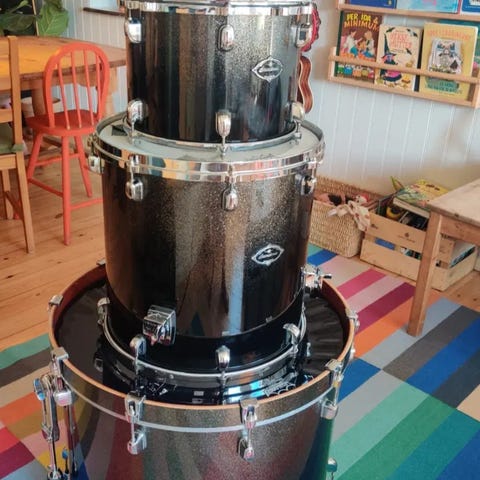 Der er monteret nye ben på BD og kedler er monteret med Remo Emperor skind.