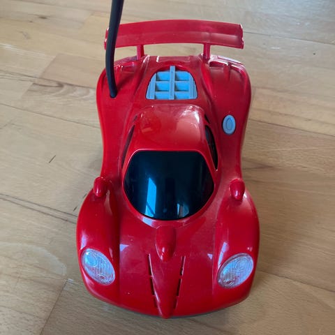 Kan bevæge for og bagparti i modsatte retninger og vende om sig selv. Sjov at køre med.