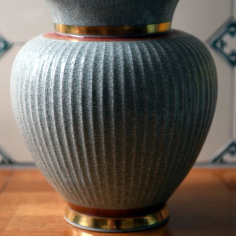 457-3054 Kgl. Grønvase med gråt og guld 23.5 cm Kongelig Dansk Craquelé, Craquele