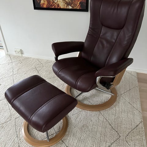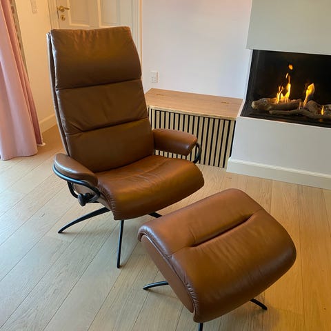 Flot ny stressless Rome læderstol i paloma Black læder koster 19099 kr sælges for 7000 kr. kan sætte en kronberg gran skammel i sort læder med til 2995 for 200 kr .