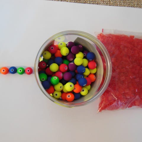 Hver sæt inkluderer alt hvad du skal bruge, herunder afmålt mængde perler i rette farver.