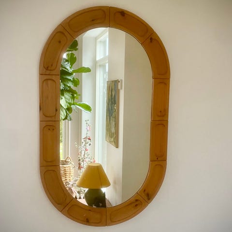 Smukt vintages spejl i egetræ mål 42,5 x 112,5 cm - i meget fin stand