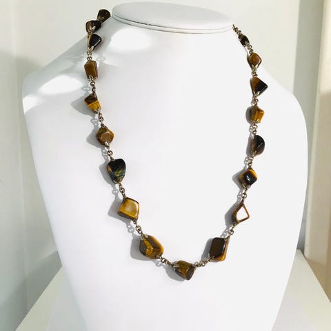 Skøn halskæde med blank polerede tigerøje, og andet metal. Vintage 1970-75.