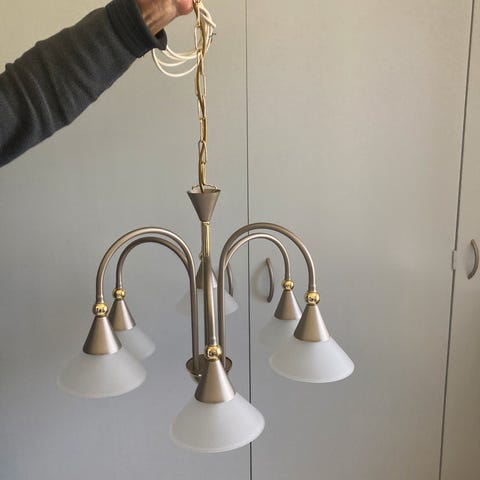Super fin og hyggelig lampe. Dem giver et roligt lys og den spreder det super fint. Den trænger til en vask og så bliver den så flot.