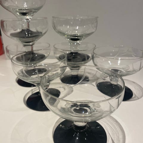Der er 2 stk tilbage. Med olivslibning på kummen. Produceret til 1931. Kan købes enkeltvis til 300kr/stk. Samlet pris for 2 stk. 500