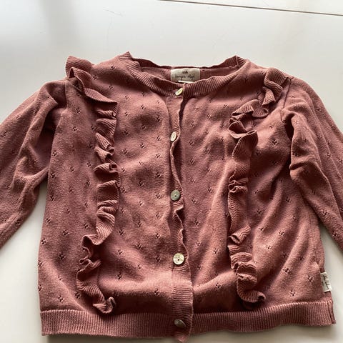 Fin strikket cardigan med knapper. Cardiganen har et smukt hulmønster og lange ærmer.