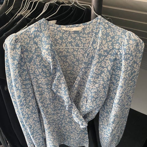 Only smuk sandfarvet crop top bluse str. S (M) i sand