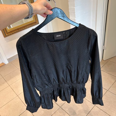 Den har bred smockkant i taljen, hvilket gør, at blusen sidder smukt til, og fremhæver din kvindelige figur på bedste vis.