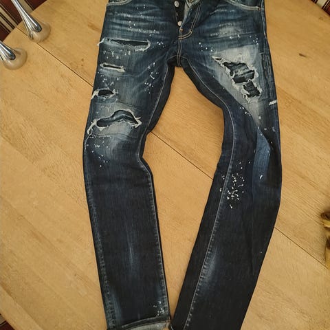 Sælger denne DSQUARED2 kasket i navyblå med det ikoniske røde maple leaf-logo foran og broderet “Dean & Dan Caten” bagpå.