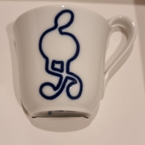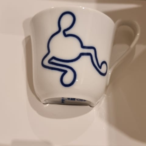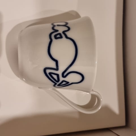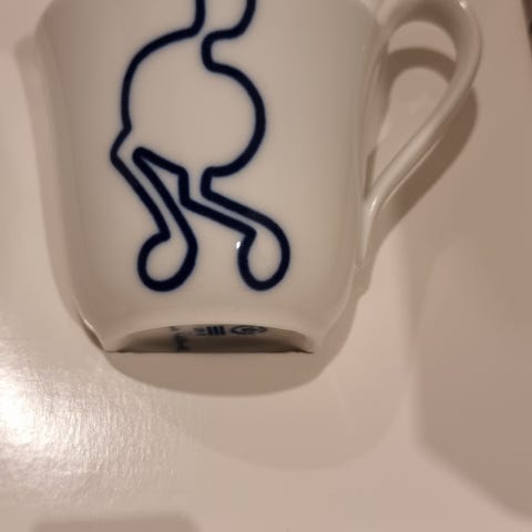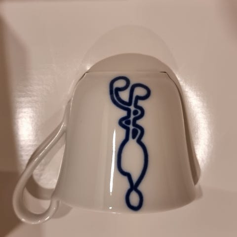 1 x Kop m. høj hank, underkop og lille tallerken i kasse; Hvile Noden (550kr)