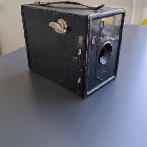 Det viste objekt er et Eaglet boxkamera, et vintage kamera.