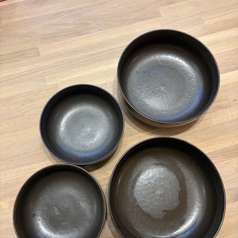 Den største skål har været brugt et par gange men de andre er ubrugte.