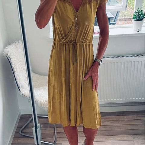 Med aftagelig bælte/bindebånd og fine detaljer.