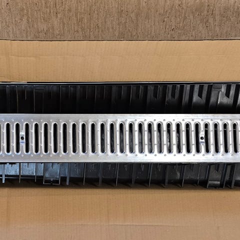 Nyt 1000mm Multiline V100s dræn fra ACO med galvaniseret stålramme. Der medfølger kraftig galvaniseret stålrist, virkelig lækkert dræn i polymerbeton. Nypris 760,-
