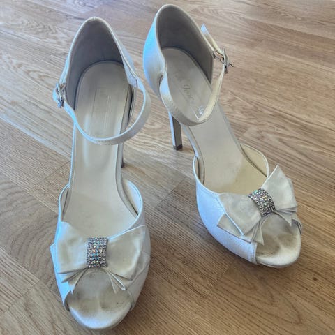 Stiletter, str. 36, Bella Moda, Cremehvid, Ubrugt, Aldrig brugt. De fineste brudesko i cremehvid med små påsyede perler. Hælhøjden er 6.5 cm. Fra røg- og dyrefrit hjem.