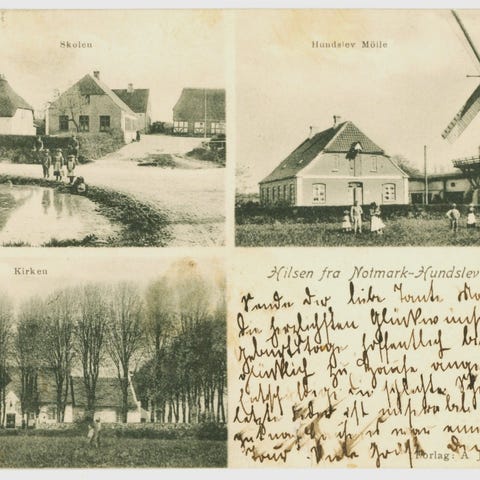 Postkort i perfekt stand med Notmark Præstegård, opført i 1688. Poststemplet 25.6.1938.