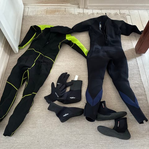 Våddragt 7mm SEAC, Næsten nye SEAC dragter - brugt få gange - købt til min datter og søn til snorkling/dykning/surfing - 7 mm dragt, størrelse medium og small.
