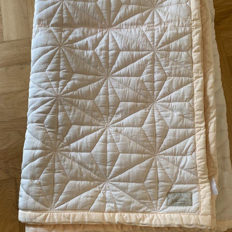 Str 200 cm x 130 cm. Kan vendes på begge sider. Er mintgrøn på den ene side og lidt mørkere grøn på den anden side.