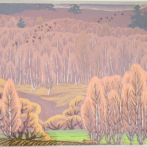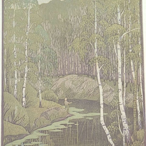 Litografi, motiv: Landskab, b: 31,5 h: 40, Kan ikke tyde kunsterens signatur