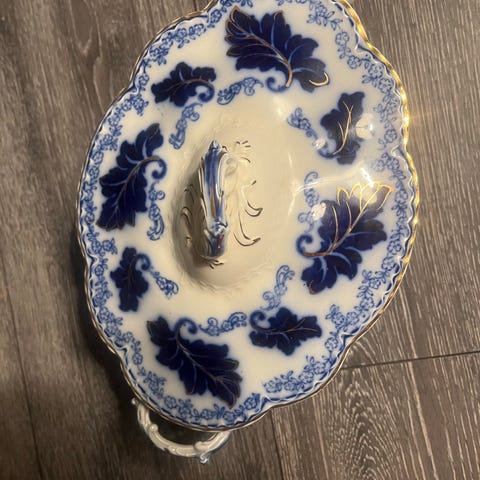 Johnson Bros, Normandy, engelsk sovseskål i meget flot stand, klar blå farve og ingen skår eller krakeleringer. Måler 15x9x23 cm