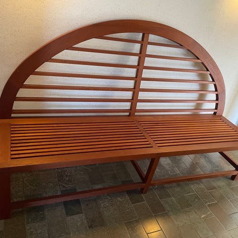Meget flot og anvendelig overalt. Bænken er udformet i det flotteste teak. Bænken koster 1000 kr.