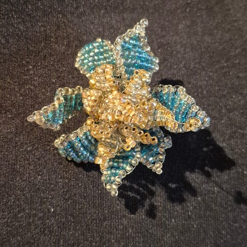 PERLEMORS BROCHE ,SKINNER I SKØNNE GRØNLIGE OG LILLA NUANCER ,NÅR LYSET FALDER PÅ !! DEN ER FORMET SOM BLADER OG MED KUGLER SOM FRUGT !!