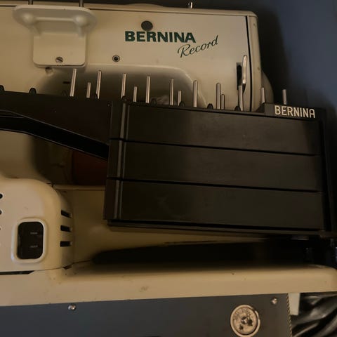 Gammel bernina symaskine. Fungerer men ikke så godt. Skal muligvis repareres. Har en knæ pedal.