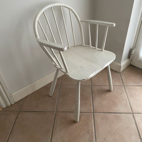 Antik Hepplewhite stol i ok stand. Hvid med blågråt velour. Ikke ryger hjem