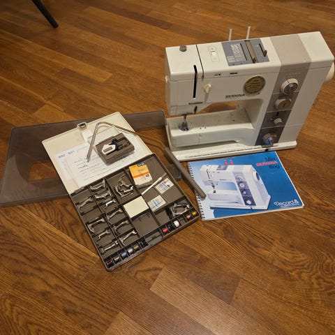 RESERVERET. Symaskinen er bomstærk og har kørt upåklageligt i mange år. Har nu stået stille pga sygdom og har samlet masser af støv. Den er i årene der er gået blevet serviceret hos Bernina 1 x årligt.