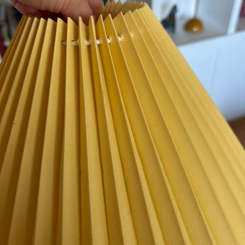 Flot moderne lampeskærm med guld beklædning indvendig. Skinner flot når lyset er tændt.
