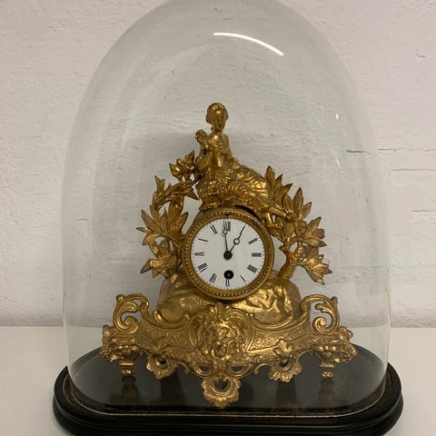 Kamin ur i messing , Messing kamin ur, Velholdt virker og holder tiden og slår til tiden godt