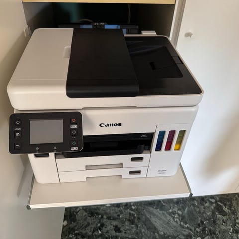Canon image RUNNER ADVANCE C3525i printer i hvid. Multifunktionel printer med kopiering, scanning og printfunktioner. Velegnet til kontorbrug med høj kapacitet og effektiv ydeevne.