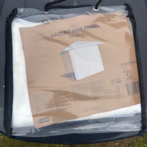Her sælges SPRITNY dug og fluenet til pavillon/gazebo købt i Jysk. Modellen hedder Nordmarka, er beige og måler 4x 3 meter. Afhentes Holstebro.