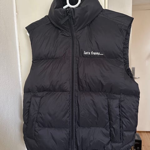 Sort unisex puffer dyne vest (oversized) med ryg tryk i str XS - ret stor i str. så har sat den til S - og svarer nok mere til S/M - se mål!