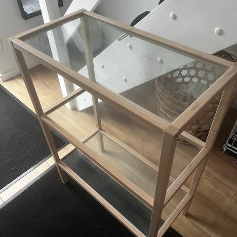 Fin reol med 5. Stk. glashylder, som opbevares i flyttetæppe for at undgå ridser.