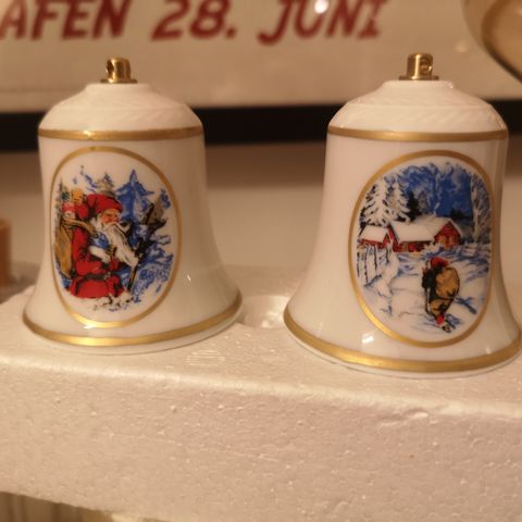 Klokke med håndtag, "Julen 1974", porcelæn, Hackefors, Sverige