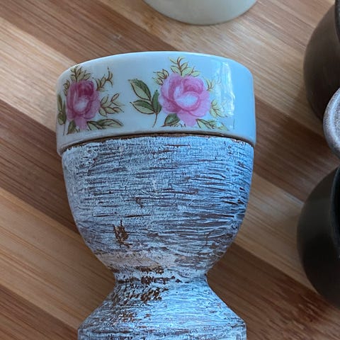 Sælger en samling mixede vintage æggebægre i porcelæn, jeg har arvet. Skønne motiver der spreder hygge ved morgenbordet;)