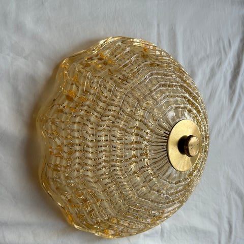 Retro loftlampe fra 70’erne, fungerer og velbevaret uden skær. 41 cm i diameter.