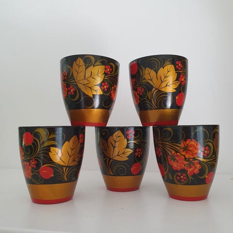 I århundreder spiste russere af skåle eller anvendte bestik, kopper og andet service som omhyggeligt var blevet udskåret i træ og derefter malet. Motiverne var ofte planter eller dyr. Hele landsbyer kunne være beskæftiget med at fremstille trægenstande af den ene eller den anden slags.