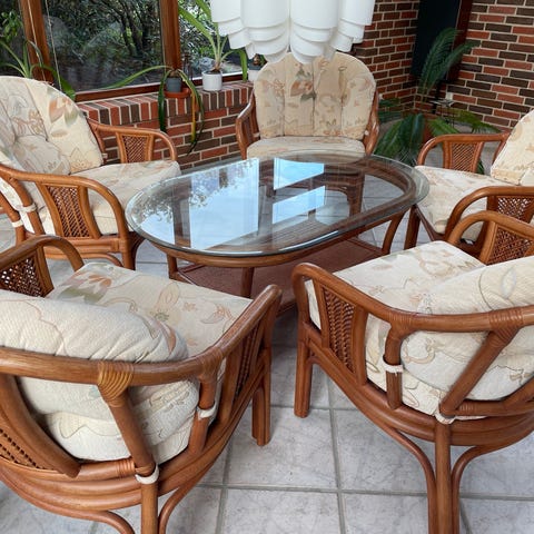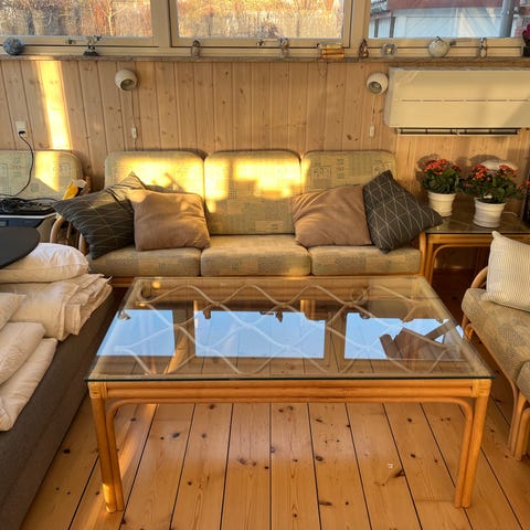 Bedårende møbel sæt flet bestående af sofa stol + skammel.