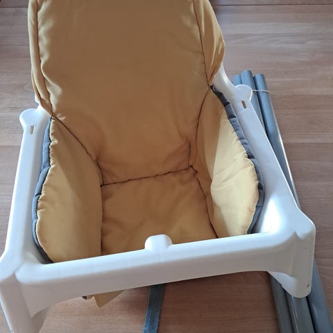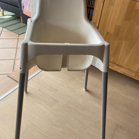 IKEA LANGUR højstol i hvid plast. Højstolen er designet med en praktisk bakkebord og sikkerhedssele for ekstra sikkerhed. Den er let at rengøre og velegnet til daglig brug ved måltider. Perfekt til småbørn, der skal sidde med ved bordet. Der medfølger støttepude.