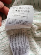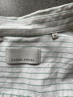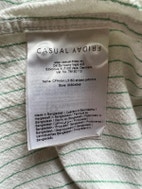 Lys skjorte med grønne striber og et broderet logo på brystet. Skjorten har lange ærmer og en knaplukning hele vejen ned. Den har en klassisk krave med knapper.