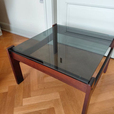 Dette elegante loungebord kombinerer moderne minimalisme med tidløst design. Bordet har en solid, rektangulær glasplade, som hviler på et stel i børstet stål med karakteristiske U-formede ben. Den transparente overflade skaber en let og luftig fornemmelse, som passer perfekt til både kontorets loungeområde, venteværelset eller det stilbevidste hjemmekontor.