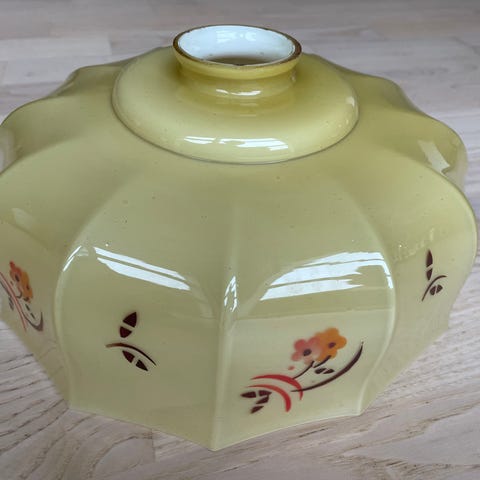 Ultra fin glas lampe uden skår eller hak i glasset. Så flotte og lækre farver, creme, brun, grøn og beige farver. Ny ledning kan med fordel isættes afhængig af hvilken farve man er til.