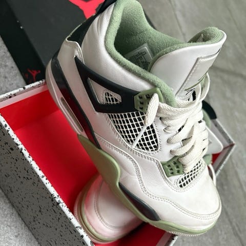 Sælger mine Jordan 4 Retro Seafoam, størrelsen er en 42,5. Har selv haft dem på 2 gange. De er legit, se evt. billede. De søger et par fusser simpelthen 😅 de kan sendes på købers regning eller afhentes hos mig