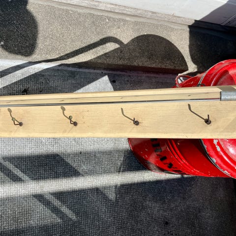 Med stang og knager, mål på foto.