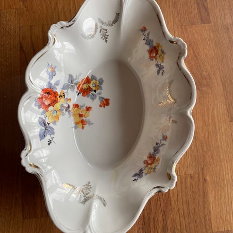 Original Bohemia porcelæn opsats Zwiebelmuster / Løgmønster, H 17,7 cm Ø 23,5, i fin stand, sælges.