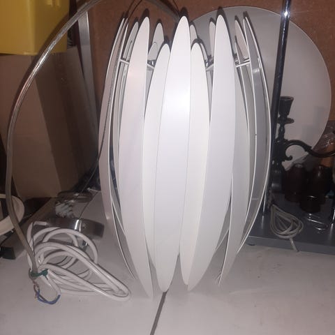 Dette er en unik lampe ud over lampe medfølger ny hvid stof ledning og montering til loft i hvide 2 stk stk Pris 260 kr