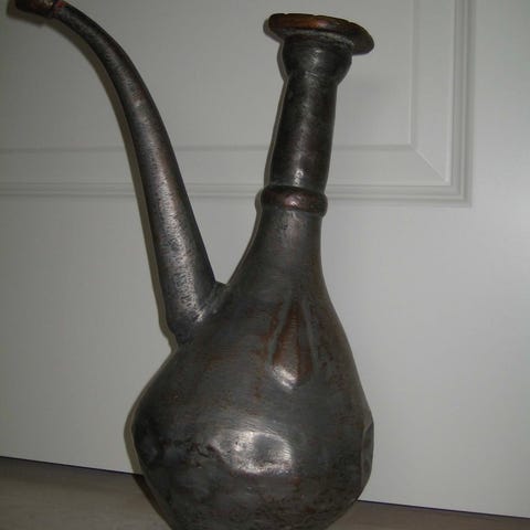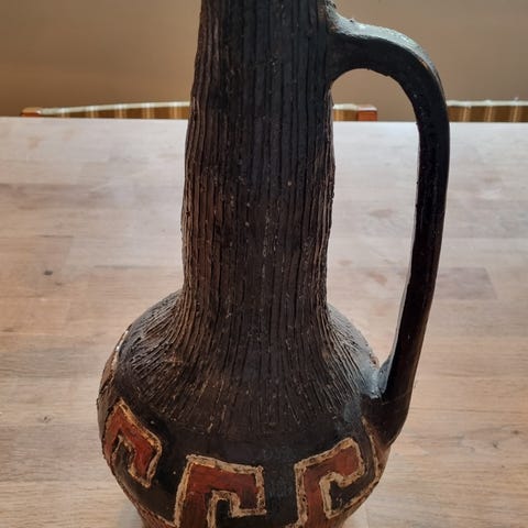 Prydkander af bronze med fod af marmor, Par prydkander af bronze prydet med putti i landskab, base af rødbroget marmor. Fra 1900 tallet. H. 25 cm.