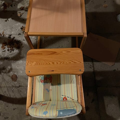 Den kan benyttes både som højstol eller som bord og stol hver for sig. Fodstøtten kan foldes ind og ud efter behov. Den lille bordplade på stolen kan tages af, så stolen kan bruges, når barnet bliver større. Bordet har en god højde til at stå og lege ved.